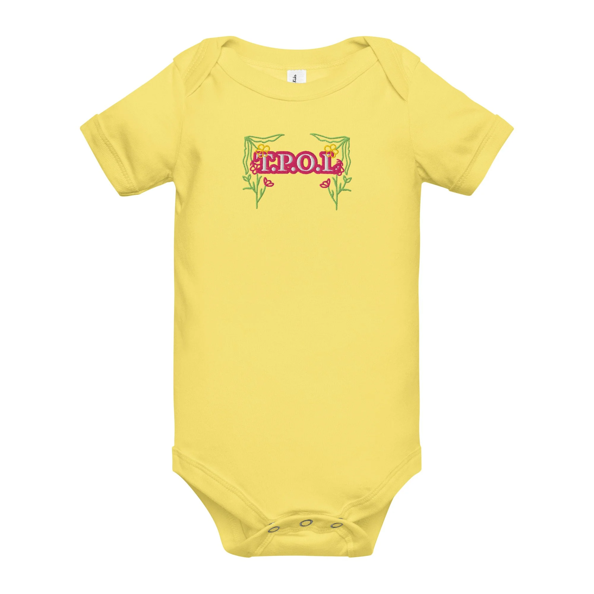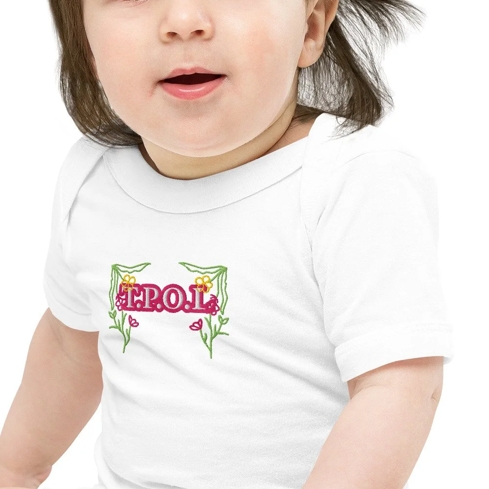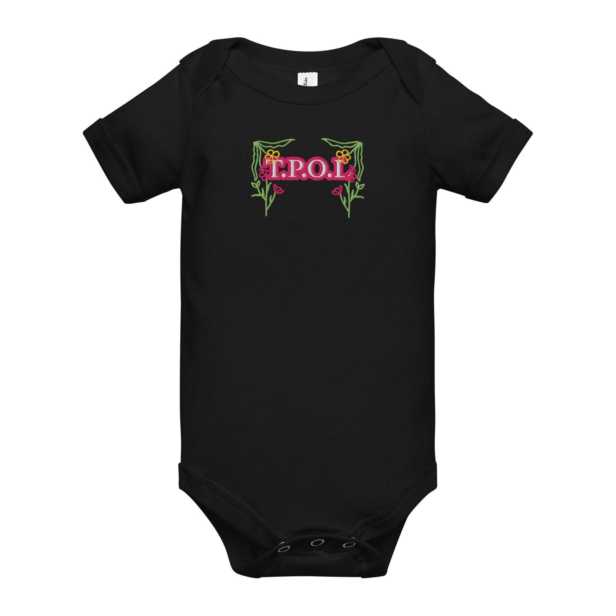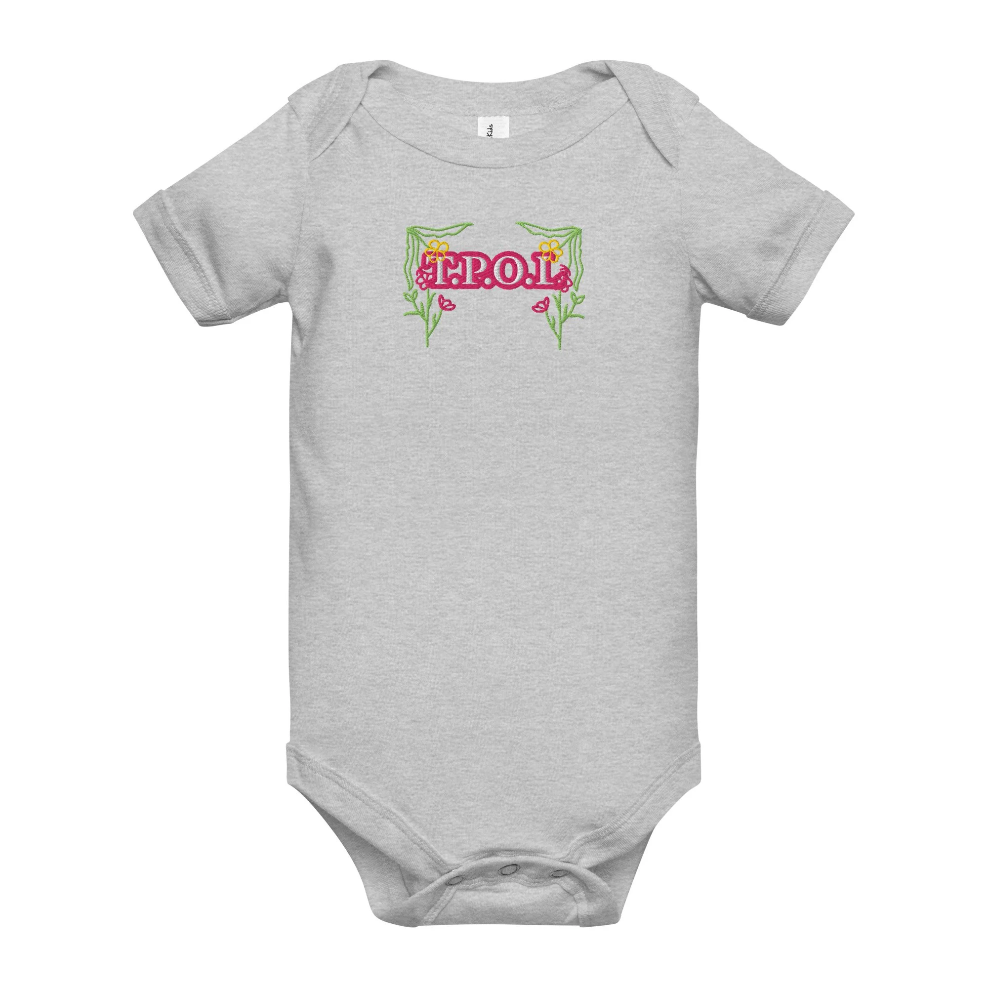 Dress your baby girl to the nines with this adorable floral embroidery, 100% cotton one piece. It has three snap leg closure for easy changing, a comfortable envelope neckline, and a beautiful print that's bound to get the baby all happy and giggling, embroidered also with the Initials “J.C.“ A.K.A…Jesus Christ. The Lord and Savior.