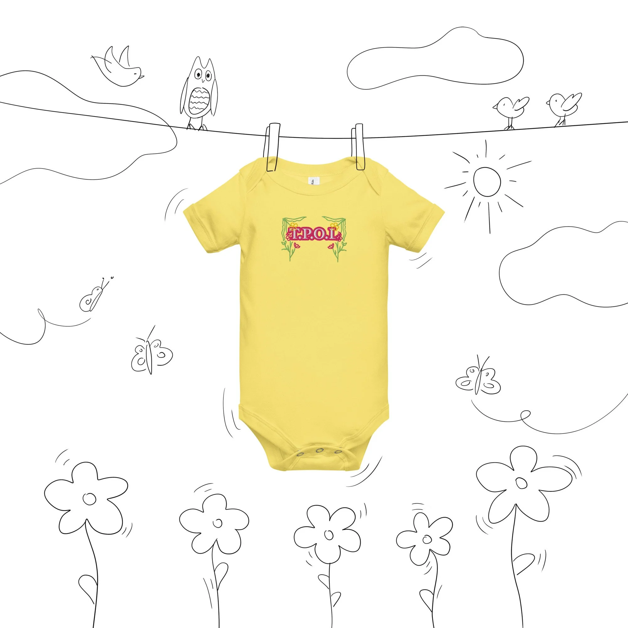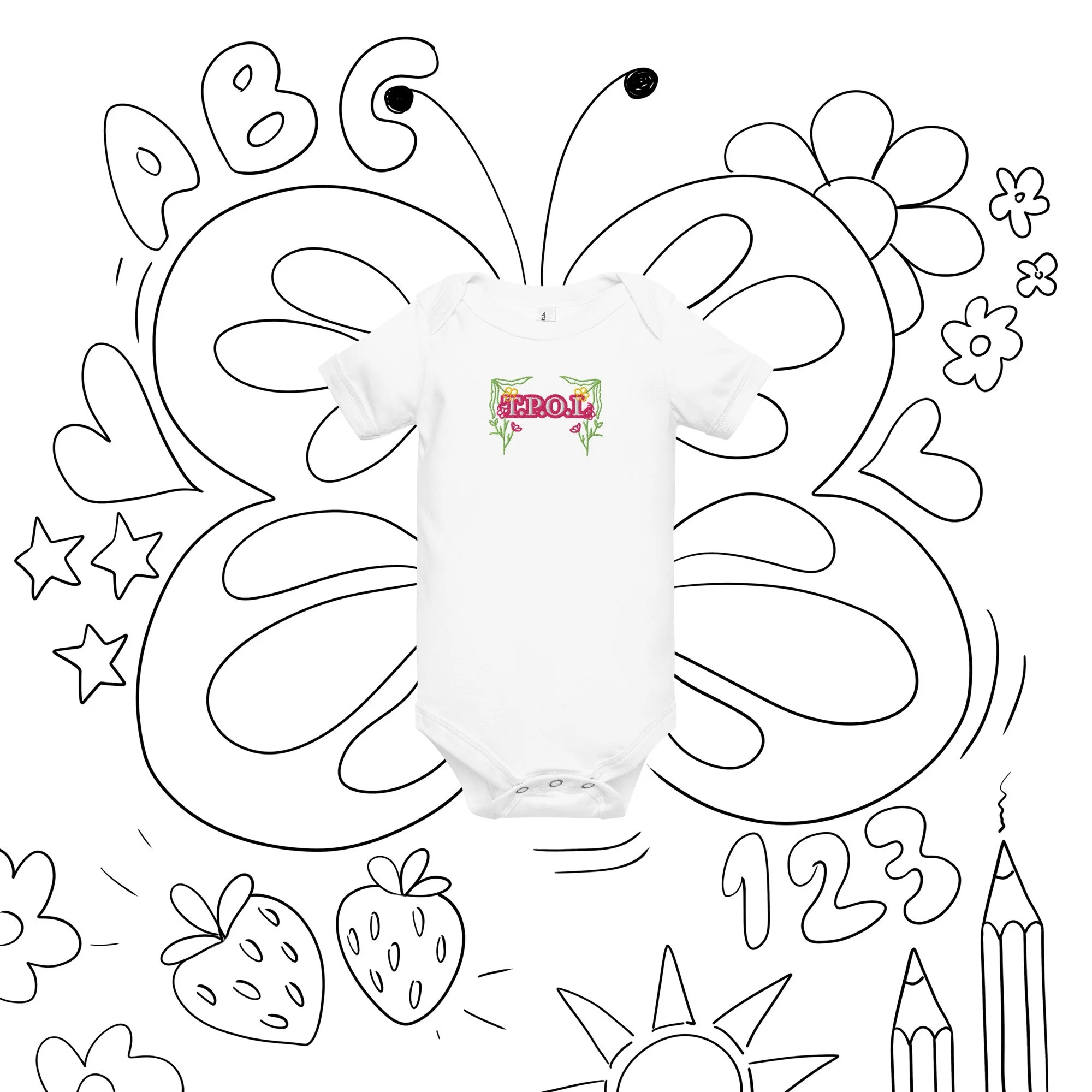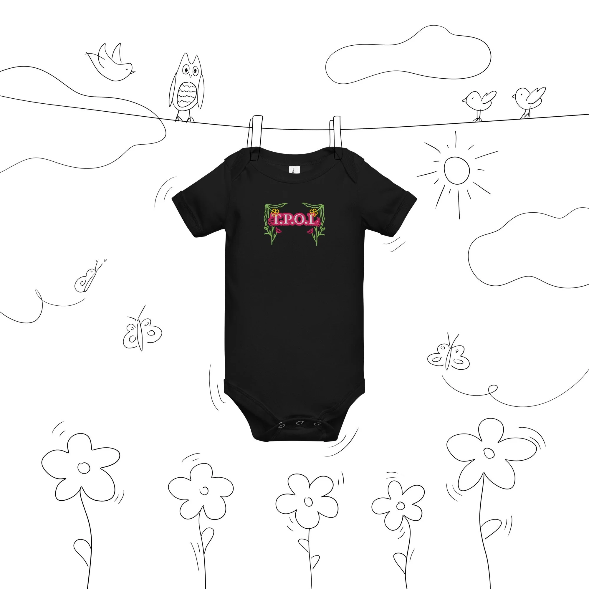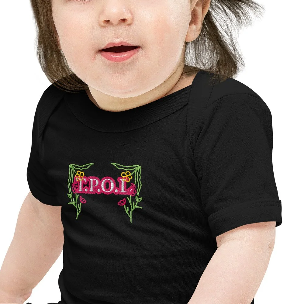 Dress your baby girl to the nines with this adorable floral embroidery, 100% cotton one piece. It has three snap leg closure for easy changing, a comfortable envelope neckline, and a beautiful print that's bound to get the baby all happy and giggling, embroidered also with the Initials “J.C.“ A.K.A…Jesus Christ. The Lord and Savior.